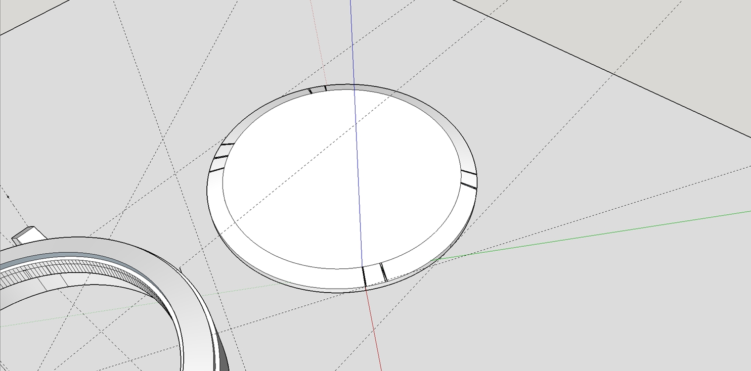 Und zwar schaffe ich es nicht, die abgeschrägte Fläche flächendeckend zu extrudieren. Es bleiben mir immer die Lücken. Ich verstehe zwar, warum die an diesen Stellen sind, aber ich weiß nicht, warum sie sich nicht schließen. An den Stellen sind sie deswegen, weil es sich um einen Uhrengehäusedeckel handelt, dessen Fläche ich kopiert habe. An den Stellen, an denen jetzt Lücken sind, waren beim Gegenstück die Bandanstösse.