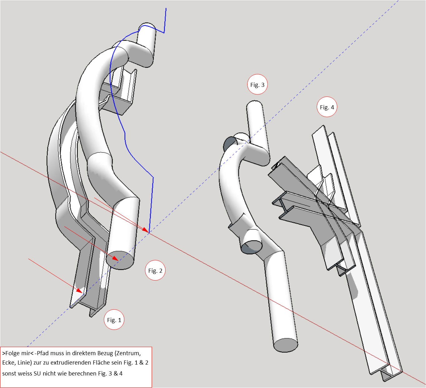 Beim >Folge mir< Werkzeug ist es für SU wichtig, dass die Fläche in einem direkten Bezug zum Pfad sind.