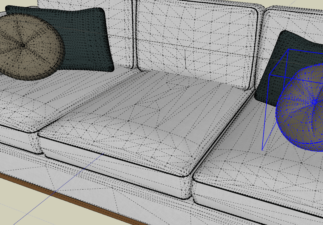 Hier der Link zum Modell in meinem OneDrive: - gelöscht - Cotty, könntest Du bitte auch mal probieren, wie es sich verhält, wenn Du eins der Runden Kissen auf den Sofa über die Sitzfläche verschiebst? Das ruckelt bei mir auch recht heftig auf SketchUp@Win10.