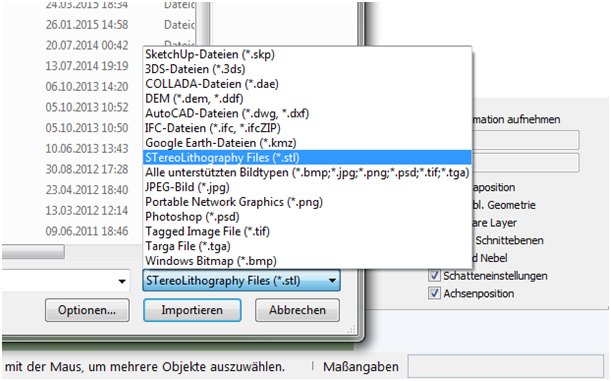 Als Auswahl wird STereolithogrphy-Datei(.STL) markiert.