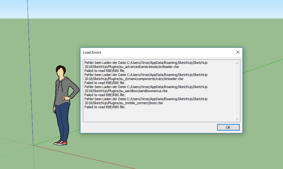 Fehler beim Laden der Datei C:/Users/Vinze/AppData/Roaming/SketchUp/SketchUp 2018/SketchUp/Plugins/su_trimble_connect/boot.rbe