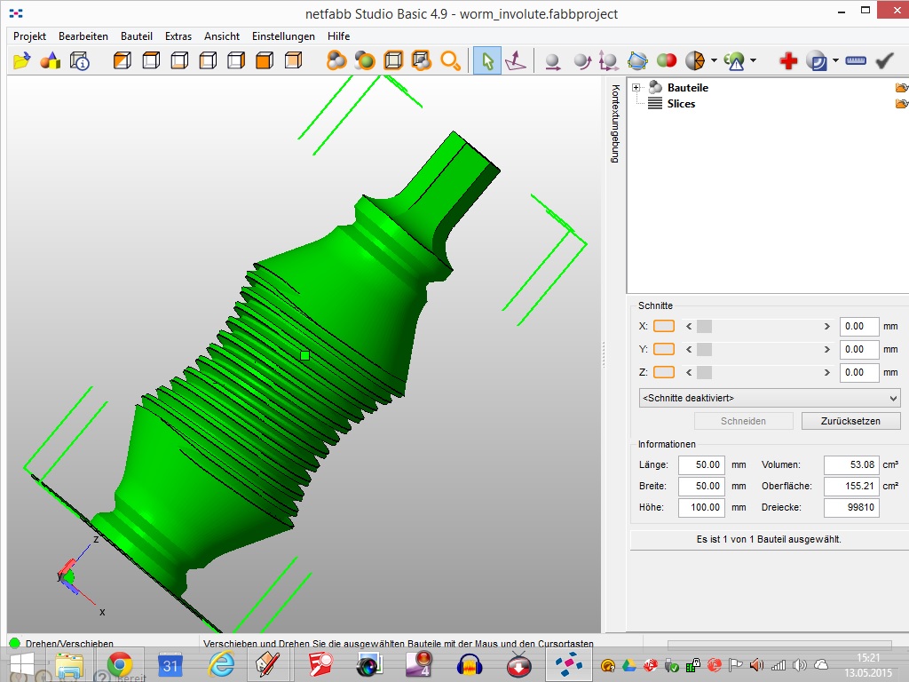 ich habe mir über ein kleines Tool zur automatisierten Erstellung von Zahnrädern und Zahnstangen Zahnrad in 2D erstellen lassen, das man ganz problemlos in SketchUp importieren. Die speziellen Angaben wie Abstände etc. sind also bekannt und können natürlich kopiert werden. Wie könnte ich aus diesen Linien eine Schnecke für einen Schneckenantrieb produzieren?