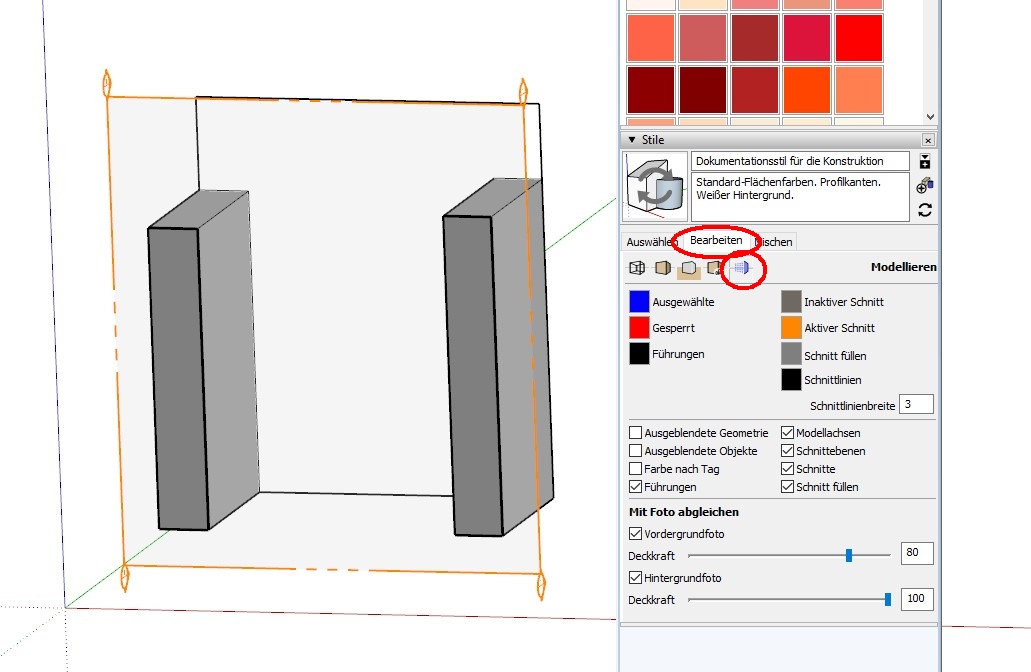 nur mal als Vorschlag, was man unter Stile bei den Schnitten so alles einstellen kann: