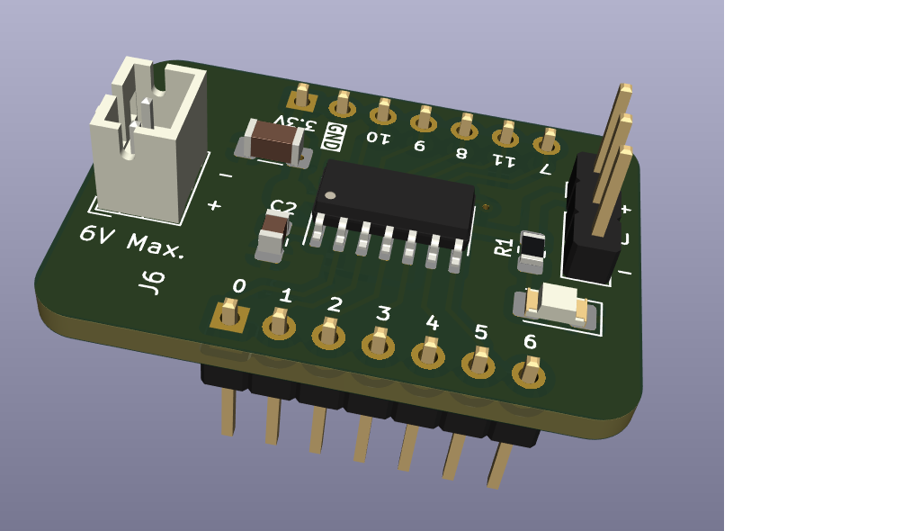 Wenn man das Layout erzeugt hat, kann man das unbestückte Platinchen für ganz kleines Geld ca. 3 Euro anfertigen lassen. Die Bauteile kosten auch nicht mehr. Der ATtiny 1604 weniger als 2 Euro. Die Platine habe ich mit Sketchup gezeichnet. Meinen Daumennagel mit fotrafiert, damit Ihr eine Größenvorstellung der Patine habt.