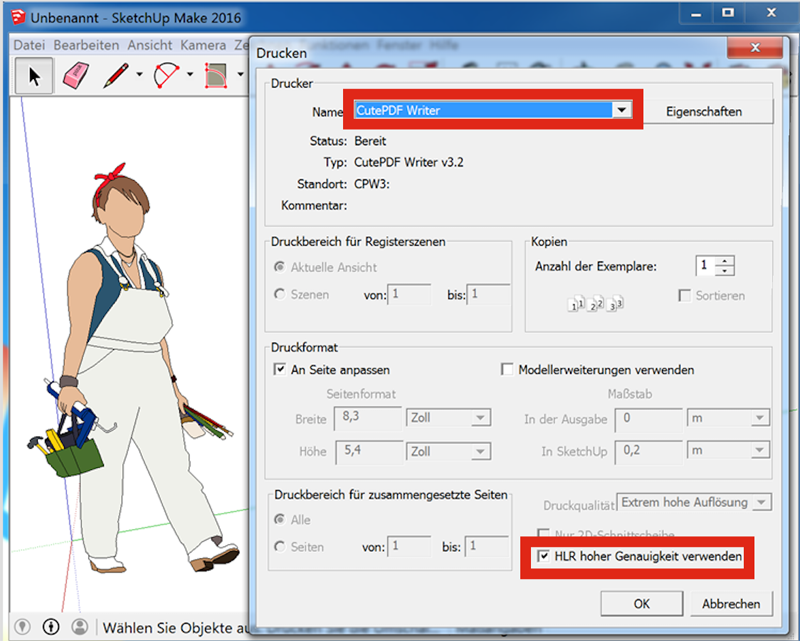 Jörg! Das ist genial. So lässt sich ein SketchUp-Modell in der Tat als vektorielles PDF drucken!