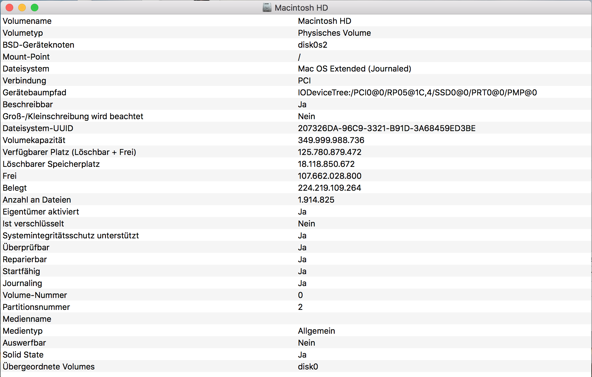 viel Danke für deine Antwort. Ich habe grade mal nachgeschaut, es wird das normale Mac OS Extended (Journaled) Dateisystem benutzt. Ich hänge einfach mal nen Screenshot von den Festplatteninformationen dran.