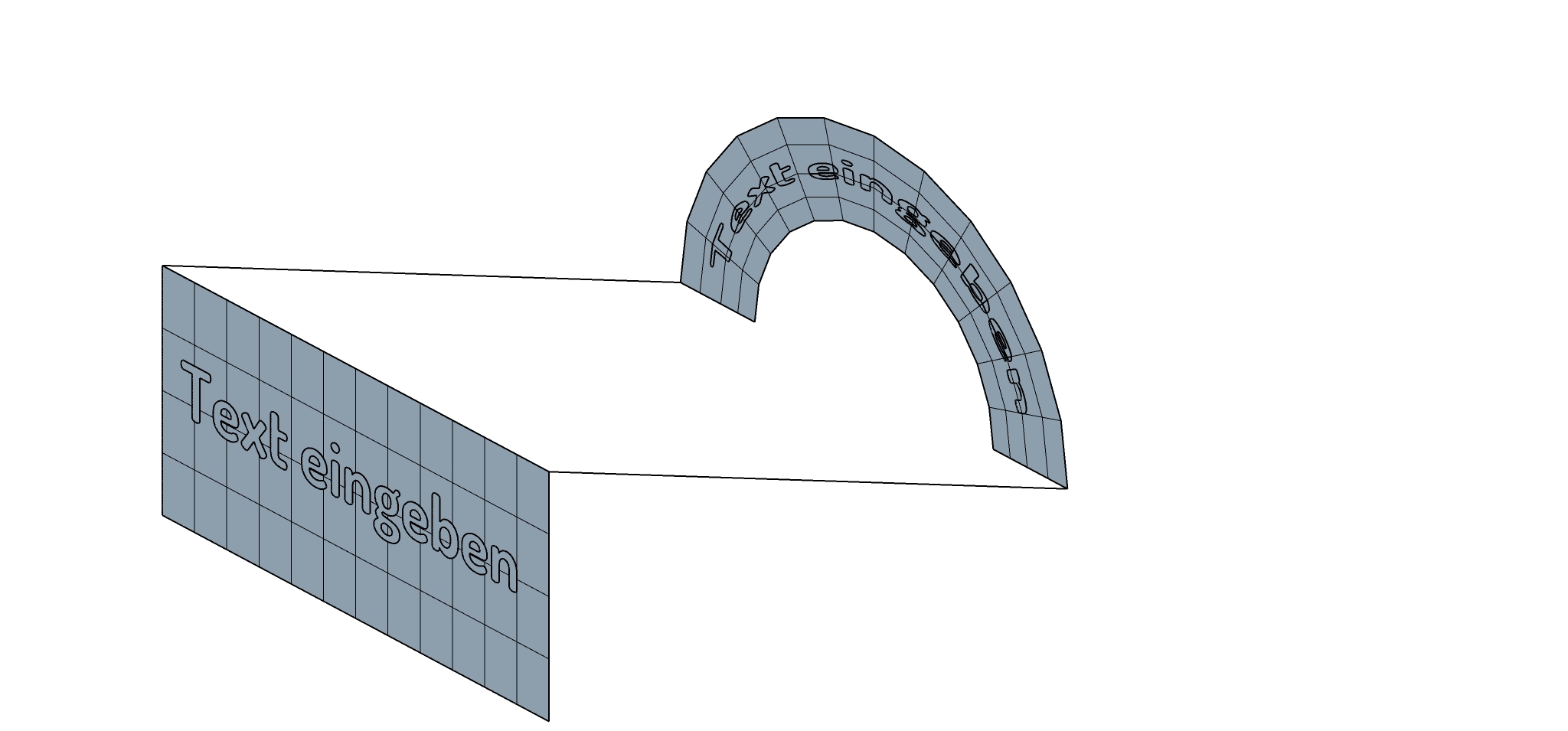 Danke, das Grid funktioniert, aber der Text will nicht auf die gebogene Fläche.