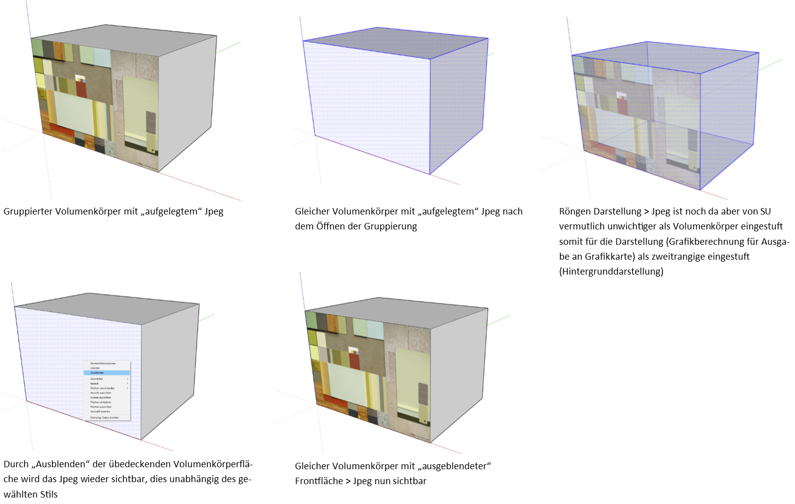 Dieser Effekt entsteht durch Auflösen eines gruppierten Volumenkörpers. Warum genau dies ist kann ich nur vermuten (siehe Bildnotiz). Das JPEG ist aber noch da, zu sehen mir der Röntgen-Darstellung. Zum wieder Sichtbar machen entweder die JPEG überdeckende Fläche «ausblenden» oder «löschen».