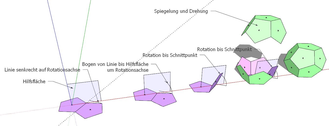 Ich baue einen Dodekaeder, also einen Körper aus 12 identischen 5-ecken. So weit so gut.