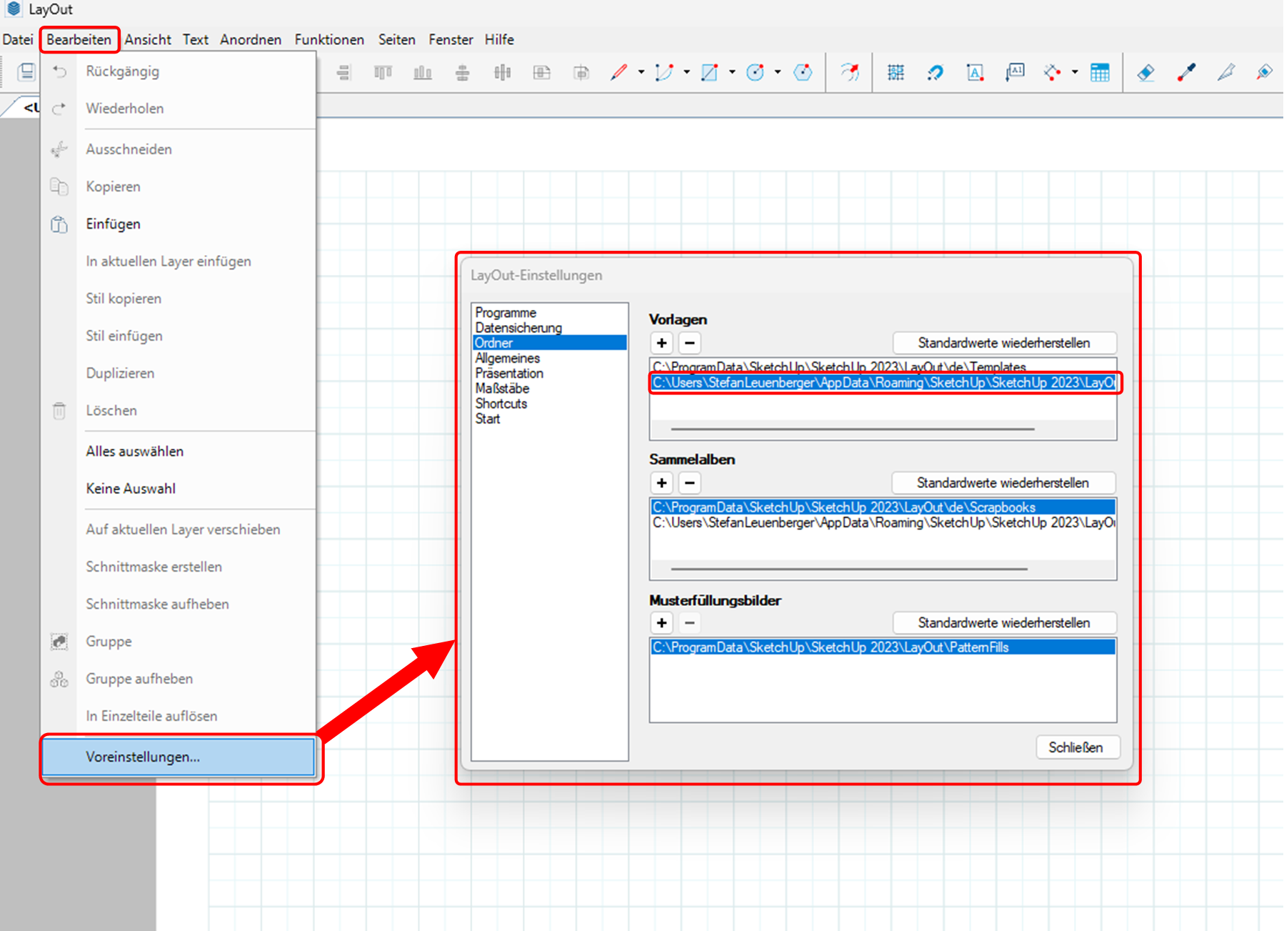 Du kannst unter >Bearbeiten >Voreinstellungen >Ordner den Datei-Pfad des Vorlagen-Ordners einsehen. Diesen musst du abschreiben und in die Windows-Suche übertragen. So gelangst du in den entsprechenden Ordner und kannst diene Vorlagen verwalten (umbenenne, kopieren, ausschneiden, löschen).