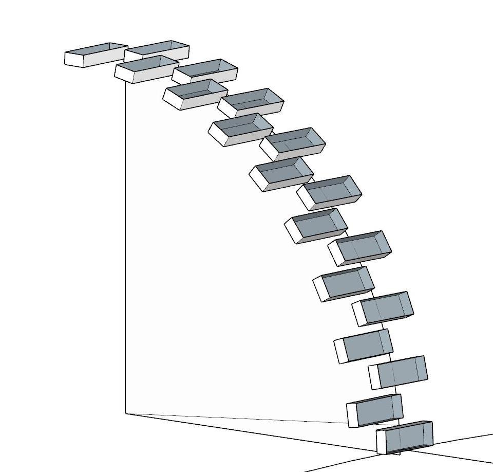 Alle Steine an der Viertelkreis angelegt. (Drehen/Kopieren) Den Versatz um einen halben Stein zueinander gemacht. (Jeden zweiten Stein markiert und um die Turmachse gedreht.) Das ist zwar beim obersten Stein dann nicht mehr die echte Hälfte. Kann man vernachlässigen. Dann aus dem Viertelkreis mit Versatz eine Dicke erstellt und mit Folge mir die Basis (sieht aus wie eine Schüssel) erstellt. Diese aber zur besseren Übersicht wieder ausgeblendet. Dann kann man die Steine um die Turmachse Drehen/Kopieren. Du musst aber bedenken, dass die Fuge (3 mm) zwischen den Steinen nach oben immer größer wird, wenn Du den untersten Ring als Drehwinkel nimmst. Ich setzte mir je eine 3 mm-Linie neben den zu kopierenden Stein. Zur Übersicht machte ich Dir mal 3 Ringe. Zum Schließen der Ringe musst Du halt wie im richtigen Leben auch mal einen zugeschnittenen Stein einsetzen. So sollte es dann aussehen. Ich habe die Steine mit der Basis nicht verschnitten. Denn dann bleiben innerhalb der Basis tausende kurze Linien stehen. Ich bin nicht der Profi fürs Drucken und weiß daher nicht, ob das stört. So jetzt wünsche ich Dir noch viel Spass beim Vervollständigen Deines Turmes. LG Peter