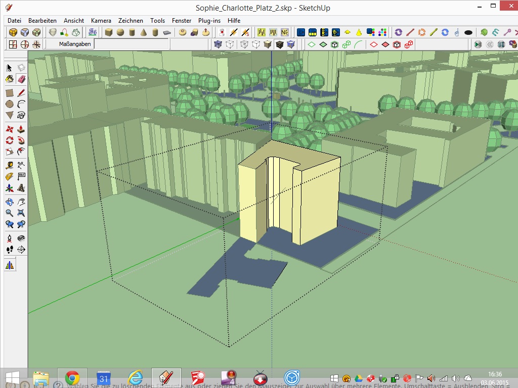 Verschneiden von Kreuzungsmodell - Matzelinho - 03.06.2015 Hallo, ich habe in Vorbereitung zu meiner Masterthesis ein 3D Modell von einer Kreuzung bekommen. Dieses würde ich aber gerne ein wenig verkleinern, da ich die Simulationszeit verkürzen möchte. Ich habe das Modell gruppiert und anschließend einen Würfel erzeugt. Anschließend habe ich das Modell soweit wie von mir gewünscht in den Würfel verschoben und dann per Rechtsklick verschneiden ausgewählt. Dann sollte in etwa an den Stellen im Bild das Modell verkleinert sein. Leider hängt sich das Programm dann einfach nur auf und es geht einfach nichts mehr. Nachdem ich das ganze auf 3 Rechner ausprobiert habt, gehe ich nun davon aus das ich was falsch mache und anscheinend die Funktion zum verschneiden nicht richtig verwende. Wäre schön wenn einer wüsste was ich falsch mache. Ich habe mal noch das Kreuzungsmodell beigefügt. Achso als Software benutze ich den SketchUp Maker 2015. Gruß, Matze RE: Verschneiden von Kreuzungsmodell - mühlbauer - 03.06.2015 (03.06.2015 - 09:41)Matzelinho schrieb: Dann sollte in etwa an den Stellen im Bild das Modell verkleinert sein. Hallo Atze, zum schneiden würde ich das Plugin "Workplane Tool" verwenden und zwar ein Schnitt nach dem anderen. Wenn ich das SKP in Version SU8 hätte, dann könnte ich sagen ob´s klappt. RE: Verschneiden von Kreuzungsmodell - Matzelinho - 03.06.2015 Hallo Mühlbauer, danke für deine Antwort. Ich habe das Model nochmal für SketchUp 8 hochgeladen (Sophie_Charlotte_Platz8.skp). Wäre nett wenn du mir sagen könntest ob es funktioniert oder nicht. Dann würde ich mir das Plugin auch installieren. Cool wäre noch eine kurze Beschreibung wie das Plugin verwendet werden soll zum schneiden. Ich bedanke mich schonmal für die Hilfe. Gruß, Matze RE: Verschneiden von Kreuzungsmodell - mühlbauer - 03.06.2015 (03.06.2015 - 12:12)Matzelinho schrieb: Dann würde ich mir das Plugin auch installieren. Cool wäre noch eine kurze Beschreibung wie das Plugin verwendet werden soll zum schneiden. Schlechte Nachricht zuerst: auch bei mir wurde Sketchup zunächst "inaktiv". Die Anwendung von Workplane ist aber denkbar einfach: man setzt einen "Angelpunkt" und 2 weitere Punkte und schließt mit Doppelklick ab. Hier habe ich einfach die senkrechte und eine waagrechte Achse gewählt (auf der verlinkten Seite ist unten übrigens ein Video-Tutorial). Anbei ein Screenshot : Ich hatte allerdings übersehen, dass einige Häuserblocks Gruppen oder Komponenten sind. Den Untergrund konnte ich auf die Schnelle schon wegschneiden. Habe bloß momentan keine Zeit - aber es geht wie man sieht garantiert: RE: Verschneiden von Kreuzungsmodell - Matzelinho - 03.06.2015 Gut dann scheint es allgemein nicht zu gehen dieses Modell kleiner zu "schneiden". Muss ich halt mit leben. Trotzdem danke für die Mühe und die kurze Erklärung. Ich werde das Plugin sicherlich trotzdem in den nächsten Monaten für andere Modelle nutzen können. Falls noch jemand eine andere Idee hat würde ich mich natürlich trotzdem sehr freuen^^ Gruß, Matze RE: Verschneiden von Kreuzungsmodell - mühlbauer - 03.06.2015 (03.06.2015 - 13:23)Matzelinho schrieb: ... scheint es allgemein nicht zu gehen dieses Modell kleiner zu "schneiden"... Wie kommst du jetzt dadrauf? Ich habe im 2. Screenshot doch gezeigt, dass es geht ! Selbstverständlich kann man die bisher "ausgeklammerten" Objekte dann auch an der schon jetzt sichtbaren Trennlinie schneiden. Oder wenn von vornherein klar ist, dass Gruppen oder Komponenten keine Rolle spielen, dann kann man alles "in Einzelteile auflösen" - dann klappt auch die Trennung auf Anhieb. Es gibt sogar ein Plugin "BOMB ALL", das wirklich alles in Einzelteile auflöst, sofern es sich an dieser Aufgabe nicht die Zähne ausbeißt und zum Absturz von SU führt. Hier ist der Häuserblock schon exakt an der Trennlinie getrennt, die schon in den vorherigen Bildern zu sehen ist. Alles andere ist Fleißarbeit. (wenn unsere Experten nicht bessere (will sagen für Faulpelze geeignete) Vorschläge haben )RE: Verschneiden von Kreuzungsmodell - cotty - 03.06.2015 Sekundensache mit den richtigen Plugins, in diesem Fall habe ich genutzt: - SectionCutFace (TIG) - Zorro2 (Whaat) (Klick für Animation) RE: Verschneiden von Kreuzungsmodell - Matzelinho - 05.06.2015 (03.06.2015 - 15:27)mühlbauer schrieb:(03.06.2015 - 13:23)Matzelinho schrieb: ... scheint es allgemein nicht zu gehen dieses Modell kleiner zu "schneiden"... das zweite Bild wurde bei mir nicht angezeigt als ich die Aussage gemacht habe scheint ja zu gehen dann werde ich mich nochmal ran setzen RE: Verschneiden von Kreuzungsmodell - Matzelinho - 05.06.2015 (03.06.2015 - 17:56)cotty schrieb: Sekundensache mit den richtigen Plugins, Hallo Cotty, das Plugin funktioniert soweit ganz gut. Nur das es beim schneiden die oberste Bodenplatte mit entfernt wird. Das sieht man auch gut in der Animation. Da änder sich die Farbe auch von weiß auf Lila (oder was auch immer). Dann ist der Bürgersteig fast doppelt so hoch, was für meine Messsimulationen nicht so günstig ist. Witziger weiße tritt dieser Effekt nicht auf allen Seiten auf wenn man das Plugin SectionCutFace verwendet. Mal schauen ob ich es noch wie gewünscht hinbekomme. Trotzdem schonmal ein großes danke eine Seite gekürzt ist schonmal besser als keine^^ Gruß, Matze RE: Verschneiden von Kreuzungsmodell - Matzelinho - 05.06.2015 (03.06.2015 - 15:27)mühlbauer schrieb: Oder wenn von vornherein klar ist, dass Gruppen oder Komponenten keine Rolle spielen, dann kann man alles "in Einzelteile auflösen" - dann klappt auch die Trennung auf Anhieb. Es gibt sogar ein Plugin "BOMB ALL", das wirklich alles in Einzelteile auflöst, sofern es sich an dieser Aufgabe nicht die Zähne ausbeißt und zum Absturz von SU führt. Leider spielen die Gruppen eine große Rolle. Ich speichere das Modell dann als Collada-File und muss für die weiter Feldsimulation an dem Modell klar die Objekte unterscheiden können. Trotz
