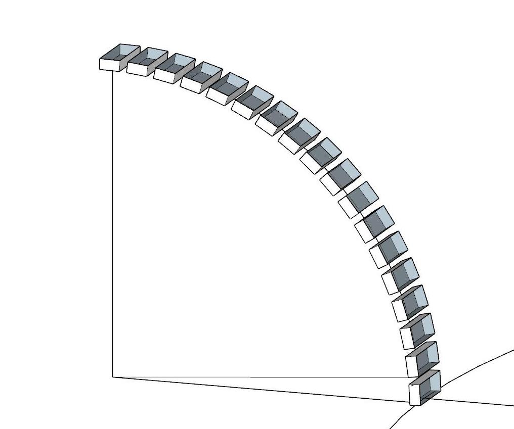 Alle Steine an der Viertelkreis angelegt. (Drehen/Kopieren) Den Versatz um einen halben Stein zueinander gemacht. (Jeden zweiten Stein markiert und um die Turmachse gedreht.) Das ist zwar beim obersten Stein dann nicht mehr die echte Hälfte. Kann man vernachlässigen. Dann aus dem Viertelkreis mit Versatz eine Dicke erstellt und mit Folge mir die Basis (sieht aus wie eine Schüssel) erstellt. Diese aber zur besseren Übersicht wieder ausgeblendet. Dann kann man die Steine um die Turmachse Drehen/Kopieren. Du musst aber bedenken, dass die Fuge (3 mm) zwischen den Steinen nach oben immer größer wird, wenn Du den untersten Ring als Drehwinkel nimmst. Ich setzte mir je eine 3 mm-Linie neben den zu kopierenden Stein. Zur Übersicht machte ich Dir mal 3 Ringe. Zum Schließen der Ringe musst Du halt wie im richtigen Leben auch mal einen zugeschnittenen Stein einsetzen. So sollte es dann aussehen. Ich habe die Steine mit der Basis nicht verschnitten. Denn dann bleiben innerhalb der Basis tausende kurze Linien stehen. Ich bin nicht der Profi fürs Drucken und weiß daher nicht, ob das stört. So jetzt wünsche ich Dir noch viel Spass beim Vervollständigen Deines Turmes. LG Peter