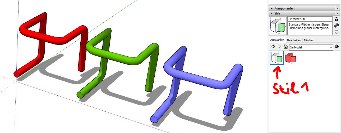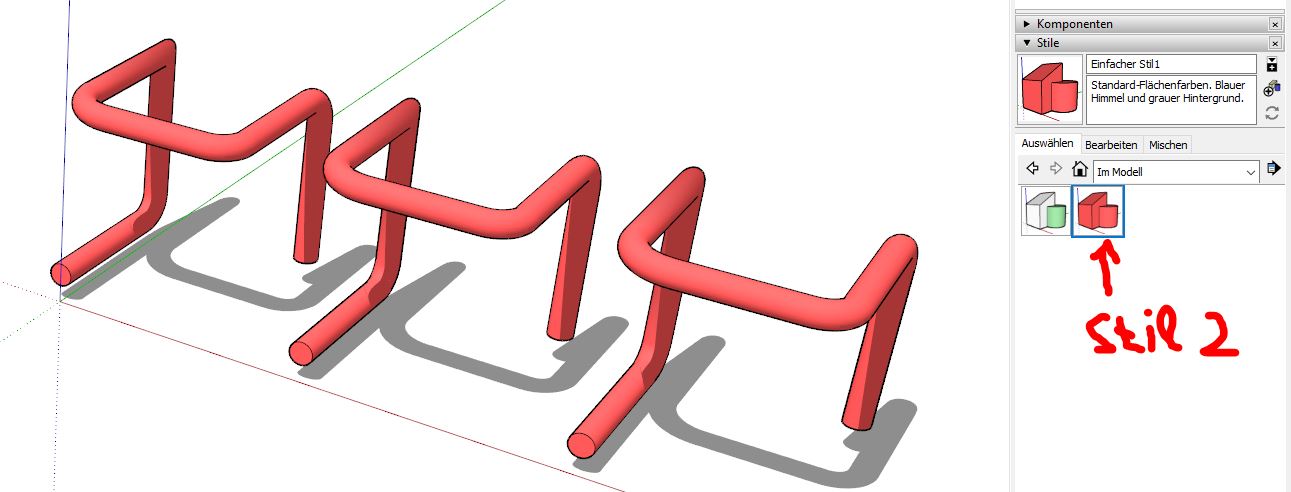 Wie kann ich aus gleichen Gruppen nachträglich Komponenten machen? - andrea - 16.12.2021 Hallo liebe SketchUper, ich bin neu hier. Mit SketchUp zeichne ich hauptsächlich Sportgeräte aus Rohren. Ich habe es mir mit YouTube und einen Mini-Kurs selbst beigebracht und es geht so... *grins* Ich habe 3 Fragen: 1. Jetzt würde ich gerne mehrere paralelle Stangen, die ich mit Strich und Tube-Along-Path zu Stangen gezeichnet habe und alle die selbe Länge haben um 20cm kürzen. Leider habe ich aber die "Mutter" nicht als Komponente, sondern es sind alles eigene Gruppen. Geht das einfach? 2. Wenn ich mit einem Sportgerät fertig bin, möchte ich gerne Teile davon bunt machen, aber nur als Alternative. dh. ich will es auf einem eigenen Layer speichern. Wie kann ich die Farbe, die ich auftrage auf einen anderen Layer speichern? 3.Wenn ich eine Komponente anklicke sehe ich, wie oft sie im Modell ist. Gibt es eine Übersicht über alle Komponenten mit der Anzahl? (Damit ich keine vergesse *zwinker*). Danke euch! Liebe Grüsse aus Wien Andrea www.calicube.com RE: Wie kann ich aus gleichen Gruppen nachträglich Komponenten machen? - cotty - 16.12.2021 1. sind es Kopien einer Gruppe oder alles einzeln erzeugte Gruppen? Im ersten Fall kämen Thomthoms SelectionToys in Frage, dort gibt es die Möglichkeit, Gruppenkopien zu einer Komponentendefinition zusammenzufassen. Wenn sie gleich aber unabhängig sind, würde ich einer zu einer Komponente machen, die anderen löschen und die Komponente dann wieder verteilen. 2. Für einzelne Teile wird das nur möglich, wenn man Kopien an gleicher Stelle anlegt und diese auf verschiedene Layer verschiebt. Für das Gesamtmodell wäre ein Stil mit Farbe nach Layer eine weitere Alternative. 3. Wie Fenster>Modellinformationen>Statistik? Oder vielleicht hilft die Gliederung weiter? Oder Plugins wie OpenCutList? RE: Wie kann ich aus gleichen Gruppen nachträglich Komponenten machen? - andrea - 16.12.2021 Vielen Dank für die schnelle Lösung! 3. super - perfekt! 2. Das mit den einzelnen Teilen ginge. Für das Gesamtmodell wäre ein Stil mit Farbe nach Layer eine weitere Alternative. Wie meinst du das? 1. Davon habe ich gelesen und es installiert. checke aber nicht wie es weiter geht. ![]() lg Andrea www.calicube.com RE: Wie kann ich aus gleichen Gruppen nachträglich Komponenten machen? - cotty - 16.12.2021 3. schön ;-) 2. Man könnte mit einem Stil mit "Farbe nach Layer" (hier Stil 2) alle Farben gleichzeitig "überschreiben", aber das ist nicht selektiv möglich... Eine weitere Alternative wäre, aus allem eine Gruppe zu machen und die Teile, die die Farbe wechseln sollen, ohne Farbe zu lassen (Standardmaterial). Dann könnte man mit dem Farbeimer die Gruppe (von außen!) mit einer Farbe versehen, die dann alle Objekte mit Standardfarbe "erben". 1. Alle Gruppenkopien markieren und dann im Kontextmenü wählen... RE: Wie kann ich aus gleichen Gruppen nachträglich Komponenten machen? - cotty - 16.12.2021 Kleiner Hinweis am Rande: wenn du die Modelle kommerziell einsetzen möchtest, müsstest du über die PRO Version nachdenken, die MAKE Version aus deinem Profil ist dafür nicht zugelassen. |