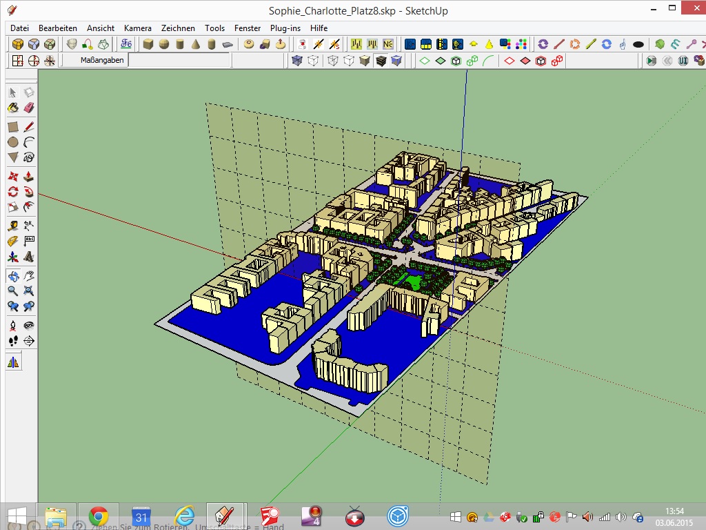 Verschneiden von Kreuzungsmodell - Matzelinho - 03.06.2015 Hallo, ich habe in Vorbereitung zu meiner Masterthesis ein 3D Modell von einer Kreuzung bekommen. Dieses würde ich aber gerne ein wenig verkleinern, da ich die Simulationszeit verkürzen möchte. Ich habe das Modell gruppiert und anschließend einen Würfel erzeugt. Anschließend habe ich das Modell soweit wie von mir gewünscht in den Würfel verschoben und dann per Rechtsklick verschneiden ausgewählt. Dann sollte in etwa an den Stellen im Bild das Modell verkleinert sein. Leider hängt sich das Programm dann einfach nur auf und es geht einfach nichts mehr. Nachdem ich das ganze auf 3 Rechner ausprobiert habt, gehe ich nun davon aus das ich was falsch mache und anscheinend die Funktion zum verschneiden nicht richtig verwende. Wäre schön wenn einer wüsste was ich falsch mache. Ich habe mal noch das Kreuzungsmodell beigefügt. Achso als Software benutze ich den SketchUp Maker 2015. Gruß, Matze RE: Verschneiden von Kreuzungsmodell - mühlbauer - 03.06.2015 (03.06.2015 - 09:41)Matzelinho schrieb: Dann sollte in etwa an den Stellen im Bild das Modell verkleinert sein. Hallo Atze, zum schneiden würde ich das Plugin "Workplane Tool" verwenden und zwar ein Schnitt nach dem anderen. Wenn ich das SKP in Version SU8 hätte, dann könnte ich sagen ob´s klappt. RE: Verschneiden von Kreuzungsmodell - Matzelinho - 03.06.2015 Hallo Mühlbauer, danke für deine Antwort. Ich habe das Model nochmal für SketchUp 8 hochgeladen (Sophie_Charlotte_Platz8.skp). Wäre nett wenn du mir sagen könntest ob es funktioniert oder nicht. Dann würde ich mir das Plugin auch installieren. Cool wäre noch eine kurze Beschreibung wie das Plugin verwendet werden soll zum schneiden. Ich bedanke mich schonmal für die Hilfe. Gruß, Matze RE: Verschneiden von Kreuzungsmodell - mühlbauer - 03.06.2015 (03.06.2015 - 12:12)Matzelinho schrieb: Dann würde ich mir das Plugin auch installieren. Cool wäre noch eine kurze Beschreibung wie das Plugin verwendet werden soll zum schneiden. Schlechte Nachricht zuerst: auch bei mir wurde Sketchup zunächst "inaktiv". Die Anwendung von Workplane ist aber denkbar einfach: man setzt einen "Angelpunkt" und 2 weitere Punkte und schließt mit Doppelklick ab. Hier habe ich einfach die senkrechte und eine waagrechte Achse gewählt (auf der verlinkten Seite ist unten übrigens ein Video-Tutorial). Anbei ein Screenshot : Ich hatte allerdings übersehen, dass einige Häuserblocks Gruppen oder Komponenten sind. Den Untergrund konnte ich auf die Schnelle schon wegschneiden. Habe bloß momentan keine Zeit - aber es geht wie man sieht garantiert: RE: Verschneiden von Kreuzungsmodell - Matzelinho - 03.06.2015 Gut dann scheint es allgemein nicht zu gehen dieses Modell kleiner zu "schneiden". Muss ich halt mit leben. Trotzdem danke für die Mühe und die kurze Erklärung. Ich werde das Plugin sicherlich trotzdem in den nächsten Monaten für andere Modelle nutzen können. Falls noch jemand eine andere Idee hat würde ich mich natürlich trotzdem sehr freuen^^ Gruß, Matze RE: Verschneiden von Kreuzungsmodell - mühlbauer - 03.06.2015 (03.06.2015 - 13:23)Matzelinho schrieb: ... scheint es allgemein nicht zu gehen dieses Modell kleiner zu "schneiden"... Wie kommst du jetzt dadrauf? Ich habe im 2. Screenshot doch gezeigt, dass es geht ! Selbstverständlich kann man die bisher "ausgeklammerten" Objekte dann auch an der schon jetzt sichtbaren Trennlinie schneiden. Oder wenn von vornherein klar ist, dass Gruppen oder Komponenten keine Rolle spielen, dann kann man alles "in Einzelteile auflösen" - dann klappt auch die Trennung auf Anhieb. Es gibt sogar ein Plugin "BOMB ALL", das wirklich alles in Einzelteile auflöst, sofern es sich an dieser Aufgabe nicht die Zähne ausbeißt und zum Absturz von SU führt. Hier ist der Häuserblock schon exakt an der Trennlinie getrennt, die schon in den vorherigen Bildern zu sehen ist. Alles andere ist Fleißarbeit. (wenn unsere Experten nicht bessere (will sagen für Faulpelze geeignete) Vorschläge haben )RE: Verschneiden von Kreuzungsmodell - cotty - 03.06.2015 Sekundensache mit den richtigen Plugins, in diesem Fall habe ich genutzt: - SectionCutFace (TIG) - Zorro2 (Whaat) (Klick für Animation) RE: Verschneiden von Kreuzungsmodell - Matzelinho - 05.06.2015 (03.06.2015 - 15:27)mühlbauer schrieb:(03.06.2015 - 13:23)Matzelinho schrieb: ... scheint es allgemein nicht zu gehen dieses Modell kleiner zu "schneiden"... das zweite Bild wurde bei mir nicht angezeigt als ich die Aussage gemacht habe scheint ja zu gehen dann werde ich mich nochmal ran setzen RE: Verschneiden von Kreuzungsmodell - Matzelinho - 05.06.2015 (03.06.2015 - 17:56)cotty schrieb: Sekundensache mit den richtigen Plugins, Hallo Cotty, das Plugin funktioniert soweit ganz gut. Nur das es beim schneiden die oberste Bodenplatte mit entfernt wird. Das sieht man auch gut in der Animation. Da änder sich die Farbe auch von weiß auf Lila (oder was auch immer). Dann ist der Bürgersteig fast doppelt so hoch, was für meine Messsimulationen nicht so günstig ist. Witziger weiße tritt dieser Effekt nicht auf allen Seiten auf wenn man das Plugin SectionCutFace verwendet. Mal schauen ob ich es noch wie gewünscht hinbekomme. Trotzdem schonmal ein großes danke eine Seite gekürzt ist schonmal besser als keine^^ Gruß, Matze RE: Verschneiden von Kreuzungsmodell - Matzelinho - 05.06.2015 (03.06.2015 - 15:27)mühlbauer schrieb: Oder wenn von vornherein klar ist, dass Gruppen oder Komponenten keine Rolle spielen, dann kann man alles "in Einzelteile auflösen" - dann klappt auch die Trennung auf Anhieb. Es gibt sogar ein Plugin "BOMB ALL", das wirklich alles in Einzelteile auflöst, sofern es sich an dieser Aufgabe nicht die Zähne ausbeißt und zum Absturz von SU führt. Leider spielen die Gruppen eine große Rolle. Ich speichere das Modell dann als Collada-File und muss für die weiter Feldsimulation an dem Modell klar die Objekte unterscheiden können. Trotz